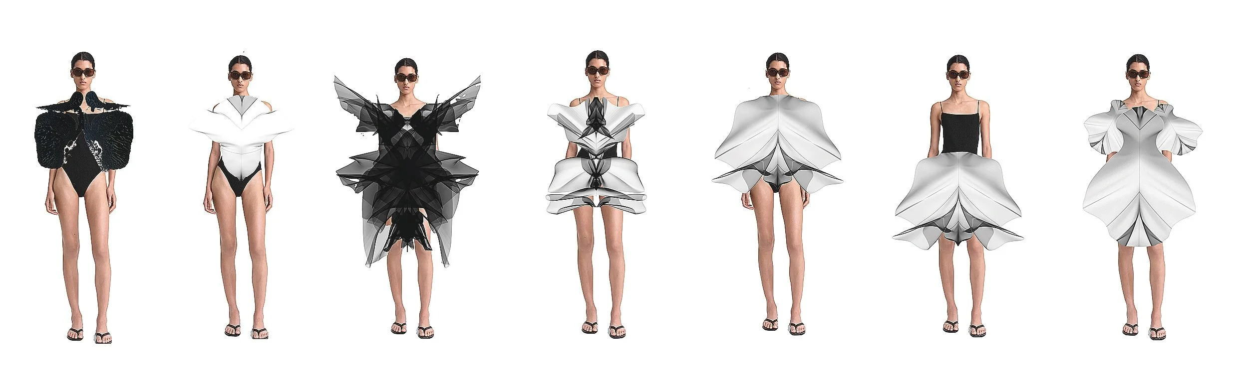 with inspiration drawn from the Bauhaus ballet Triadic. The collection aims to blend avant-garde elements with simplicity, reflecting both creativity and practicality.
