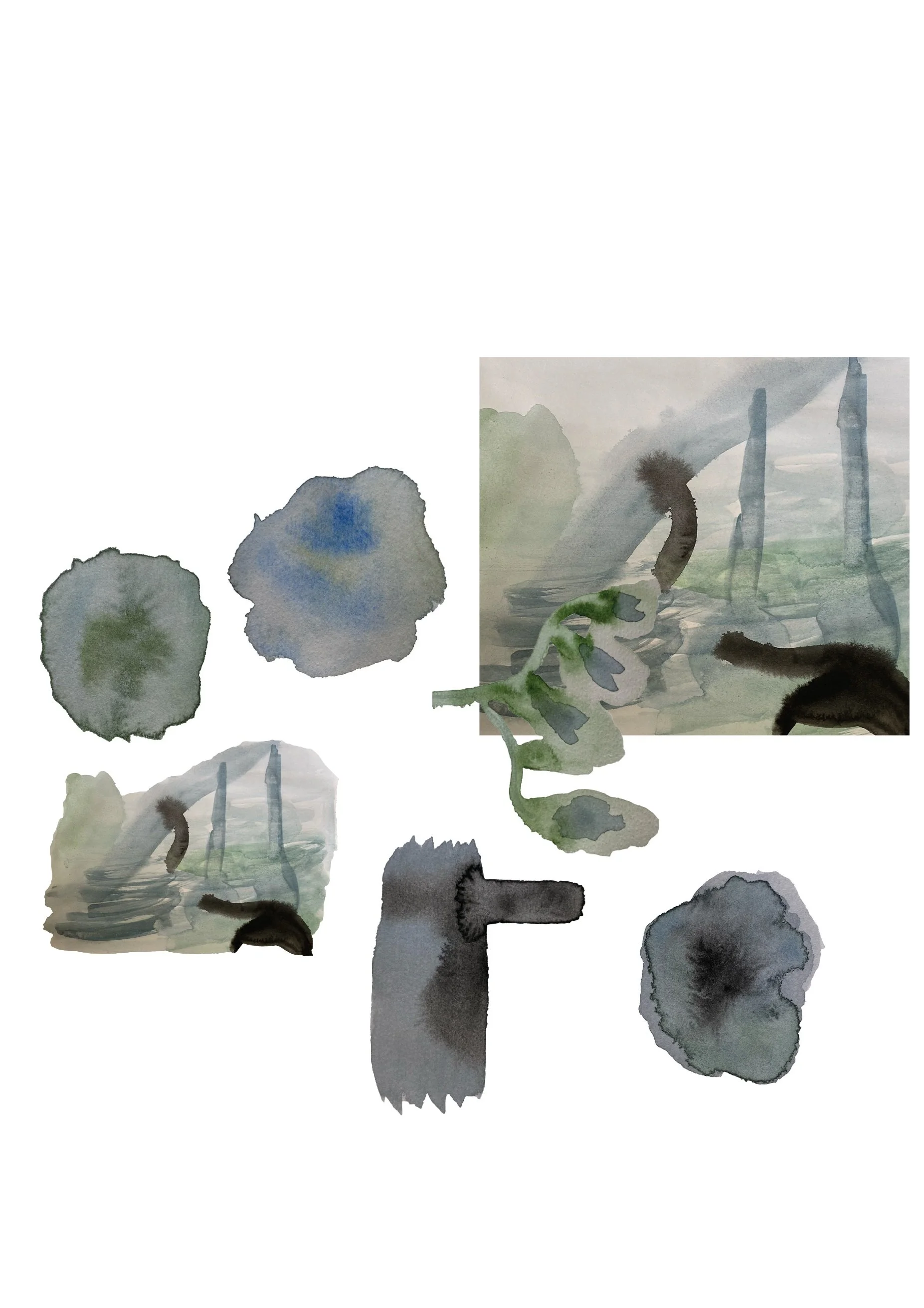 The design blends oversized silhouettes with feminine tailoring, featuring subtle details like ruffles and a soft color palette inspired by Japanese watercolor art.