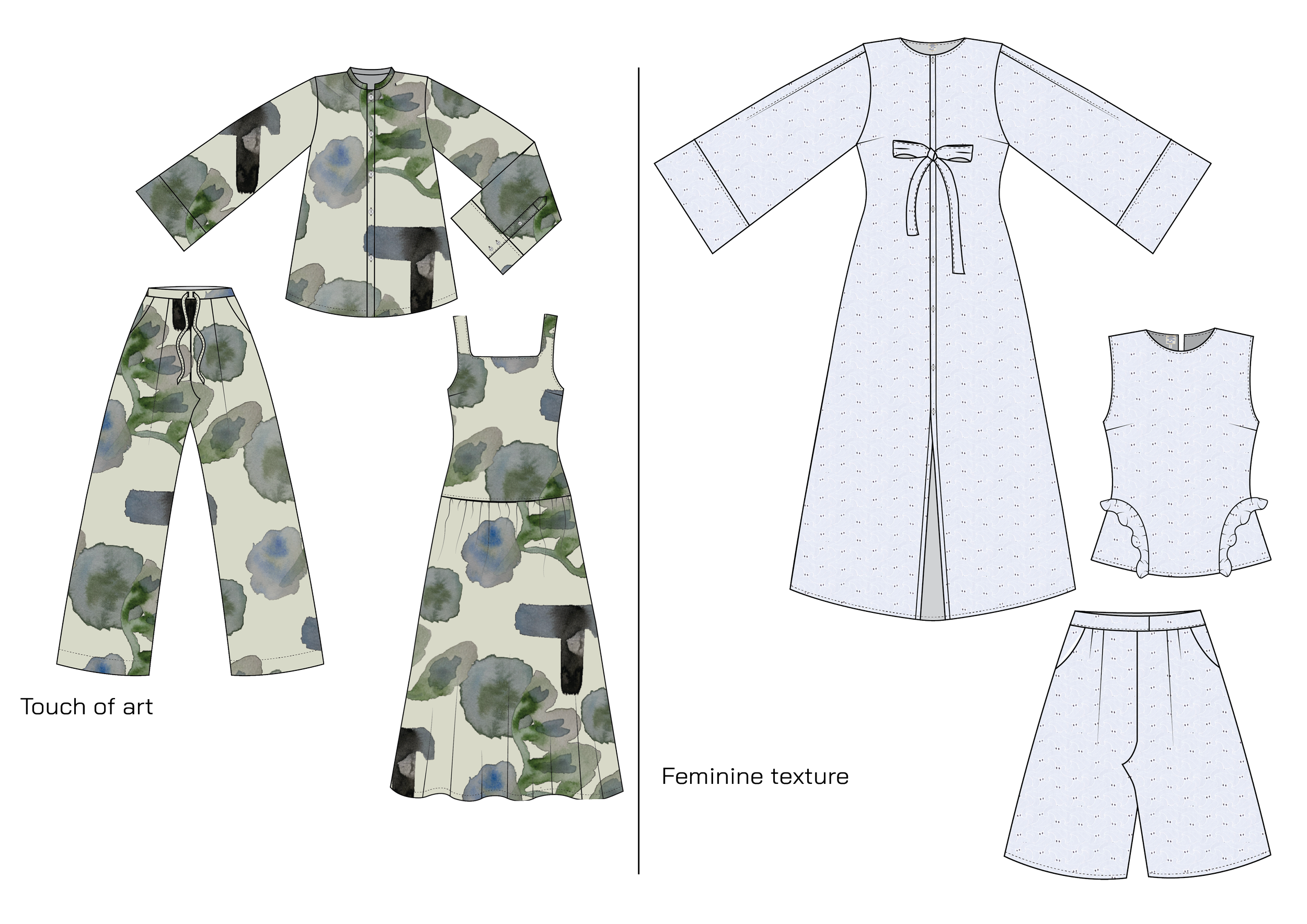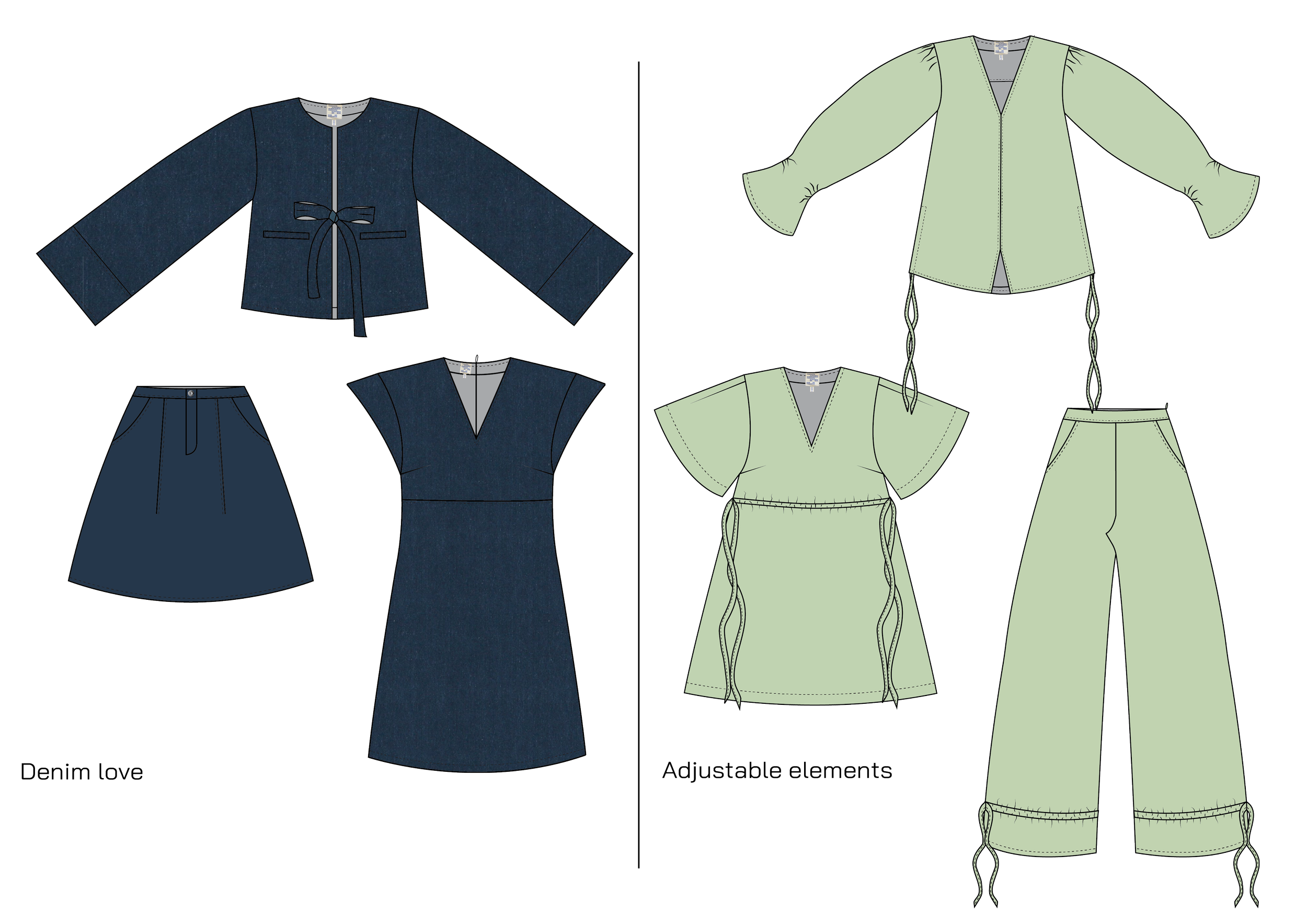 I focused on durable fabrics like denim and poplin, paired with feminine broderie anglaise and light Tencel.